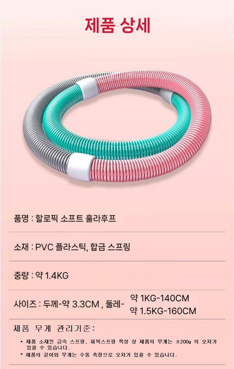 | 품명 및 모델명 | 고탄성 소프트 스프링 허리라인 다이어트 슬림 뱃살 훌라후프 | KC 인증정보 | 상품 상세페이지 참조 |