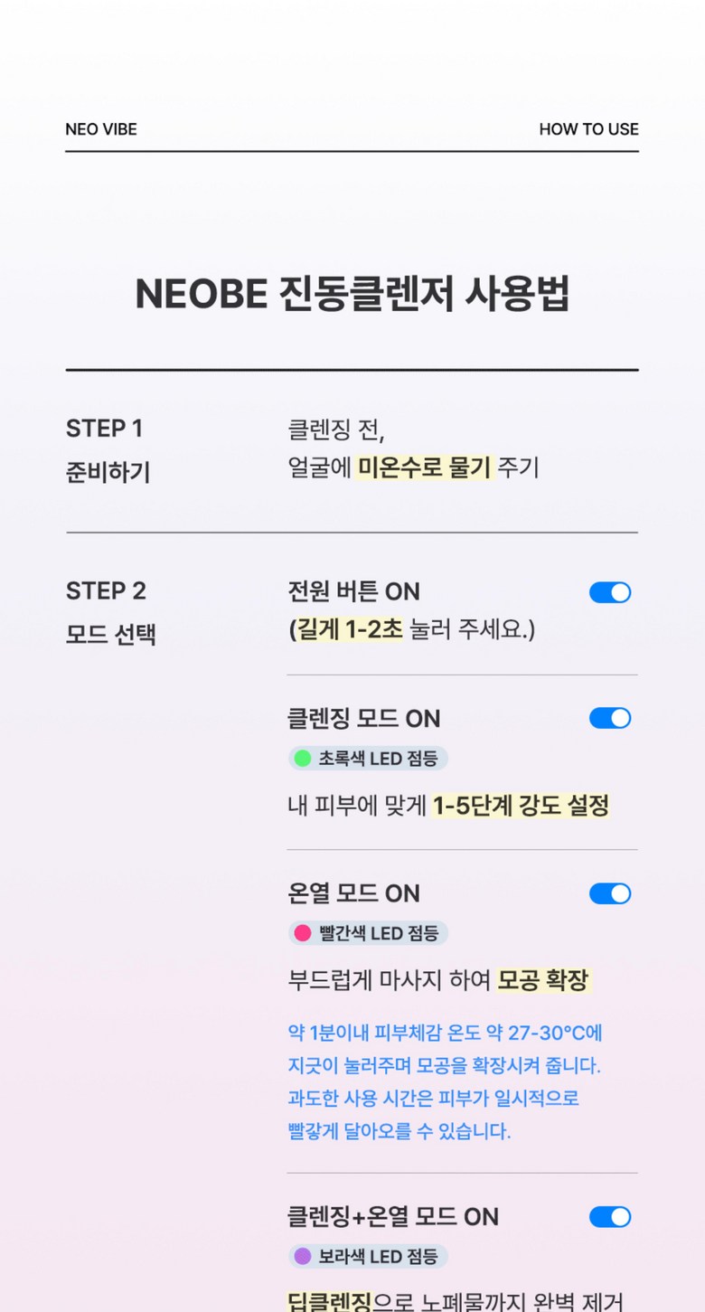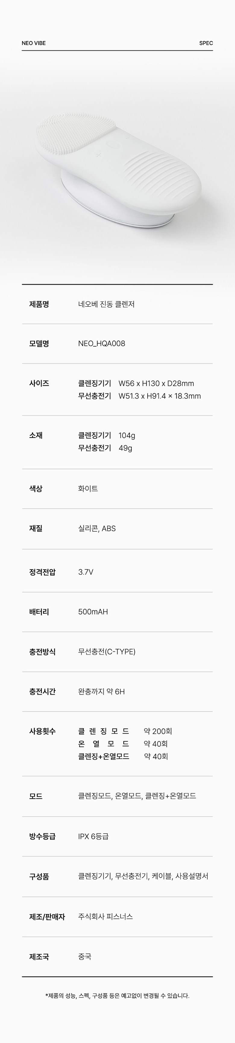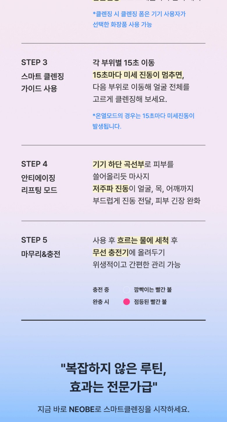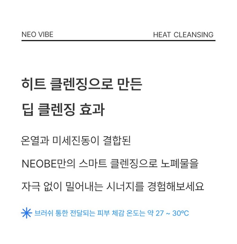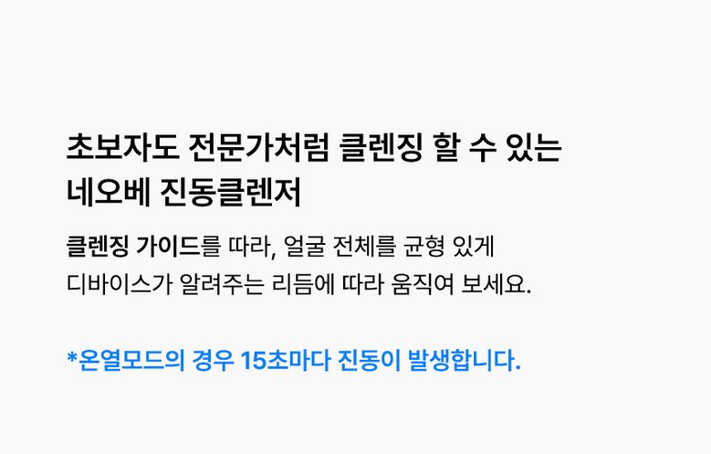 | 품명 및 모델명 | 네오베 진동클렌저 | KC 인증정보 | 상품이 KC,EMC 대상인 경우, 본품 및 구성품 모두 인증번호 또는 인증번호가 없는 경우 KC 마크 여부를 기재해주세요. (대상이 아닌경우 "해당없음" 기재) |