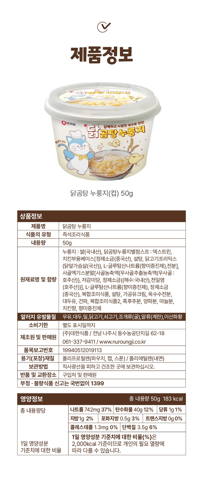| 생산자 및 소재지 | 컨텐츠 참조 | 제조연월일, 소비기한 또는 품질유지기한 | 업데이트 예정 |