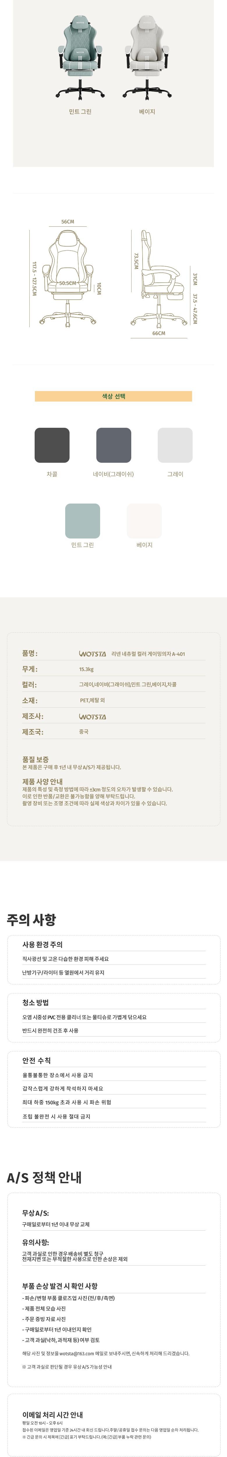 | 품명 | WOTSTA 게이밍의자 A-401 | KC 인증정보 | 해당없음 |