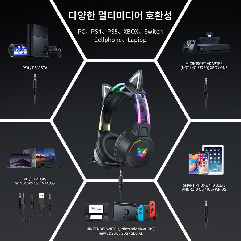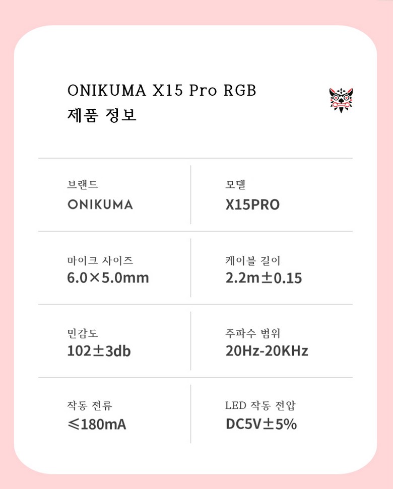 | 품명 및 모델명 | ONIKUMA 고양이귀 유선 RGB 게이밍 헤드셋 LED 가상 7.1 usb 노이즈캔슬링 마이크 X15 PRO | KC 인증정보 | KC인증: R-R-OUNI-X15pro |