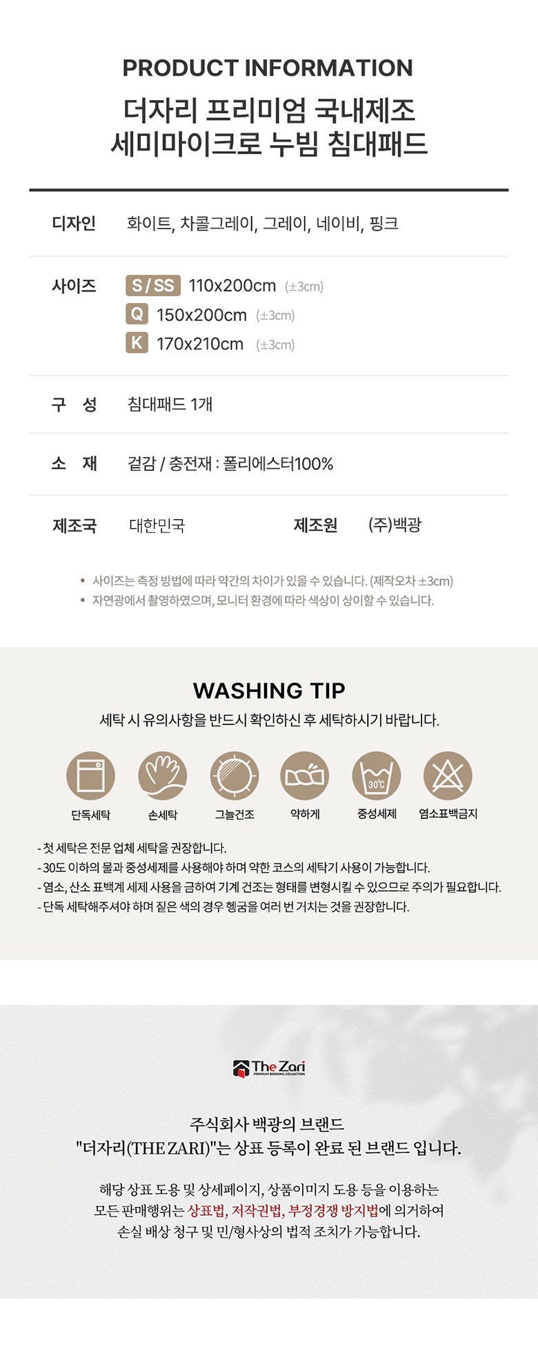 | 제조자(수입자) | (주)백광 | 제조국 | 대한민국 |