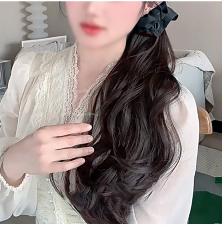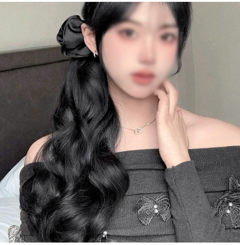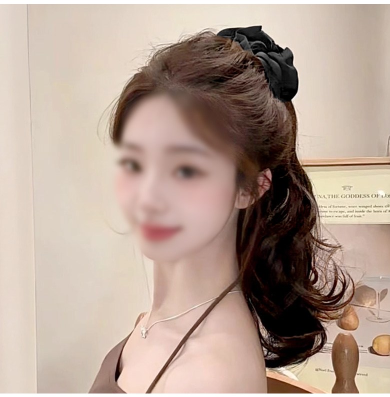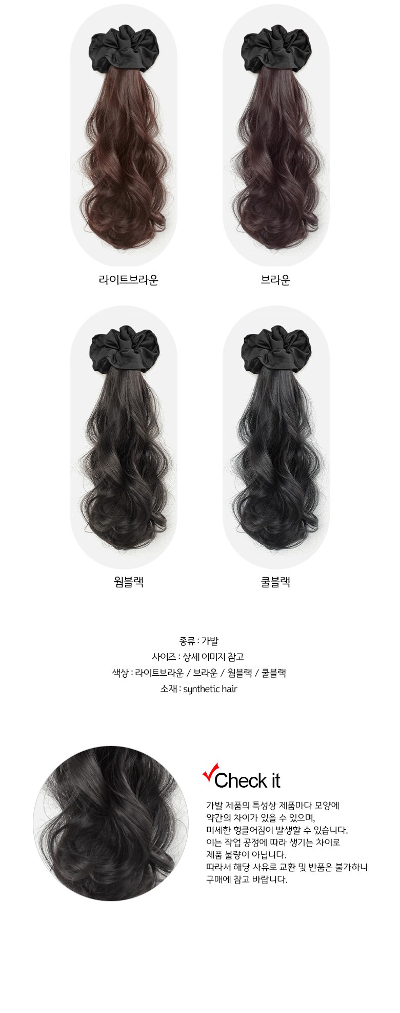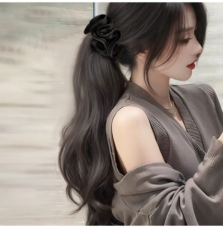 백송 여신 웨이브 글램 포니테일 곱창 가발 집게핀 곱슬 내츄럴 볼륨 부분 가발 머리핀, 웜블랙, 1개