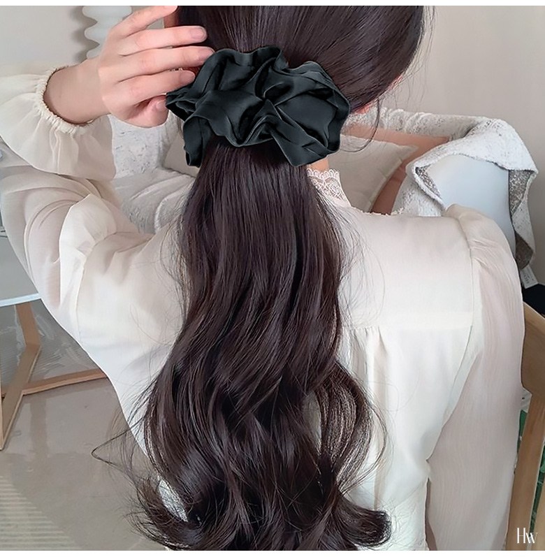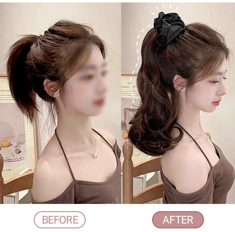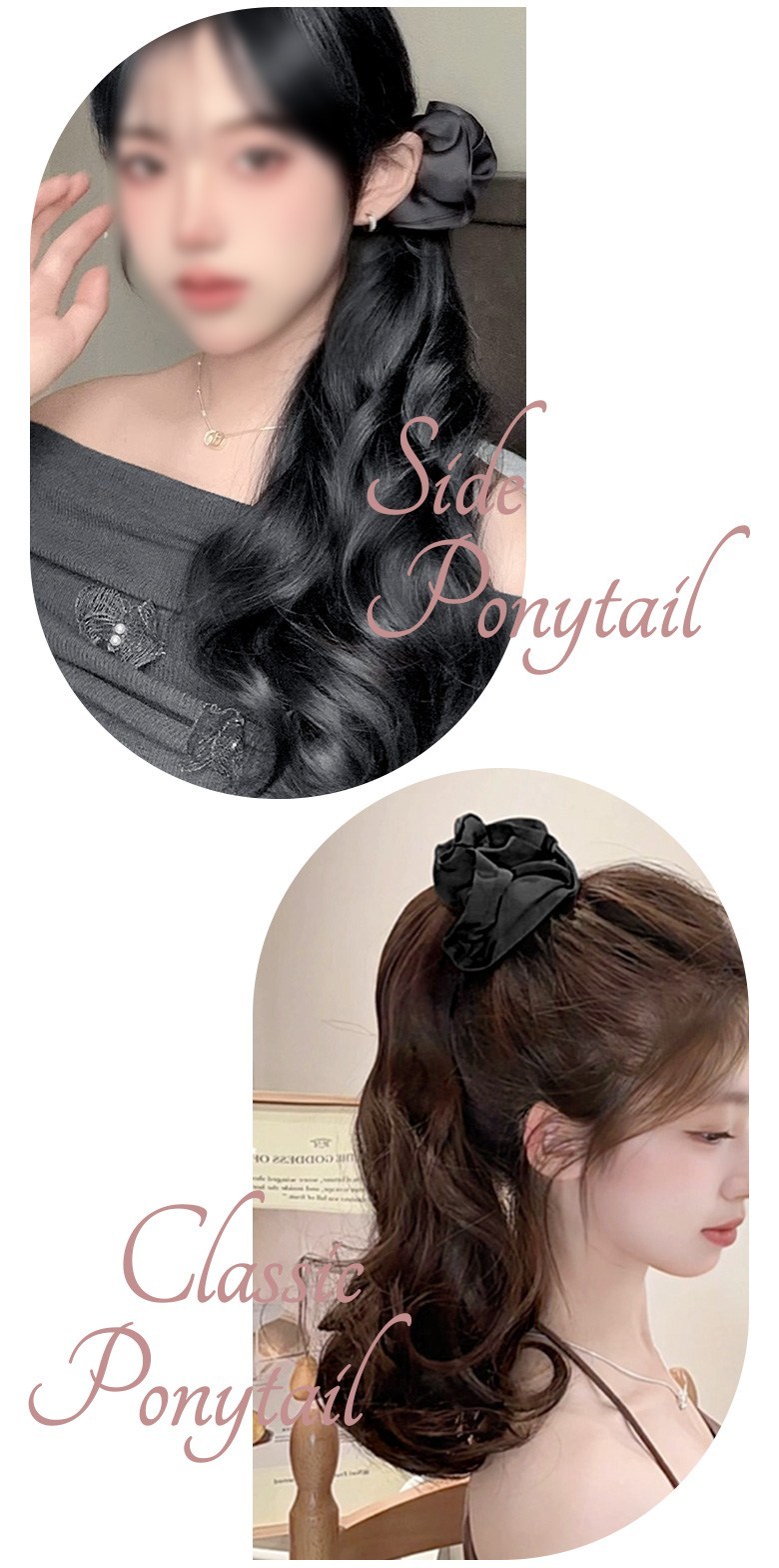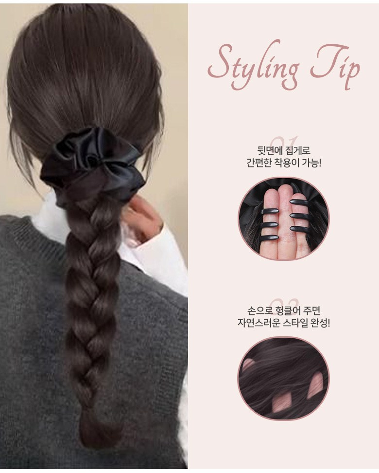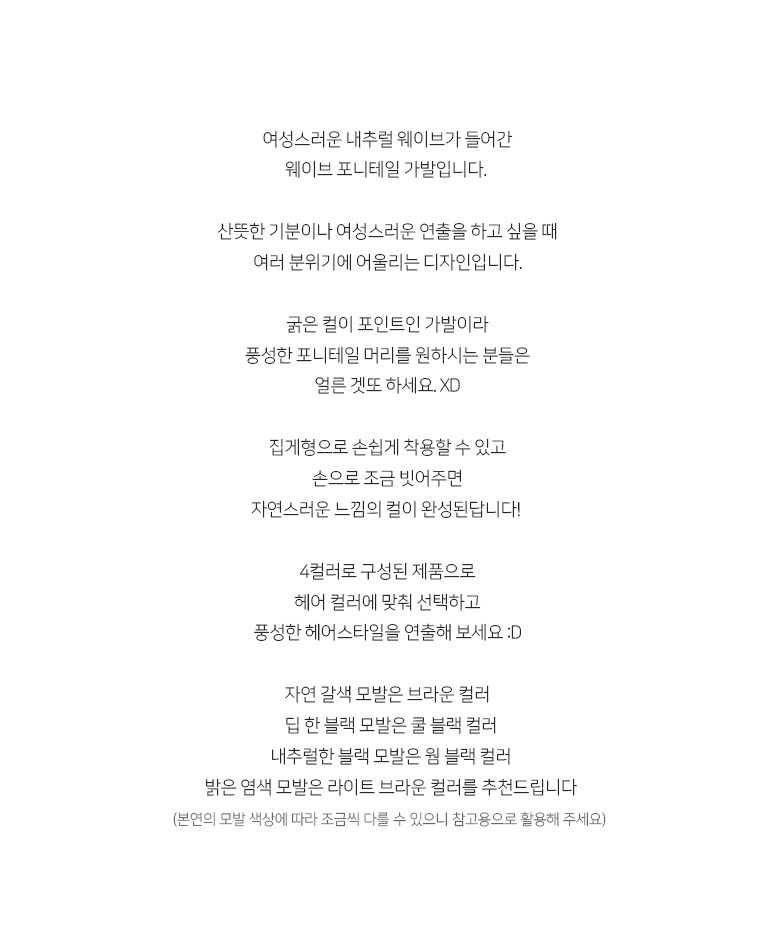 백송 여신 웨이브 글램 포니테일 곱창 가발 집게핀 곱슬 내츄럴 볼륨 부분 가발 머리핀, 웜블랙, 1개
