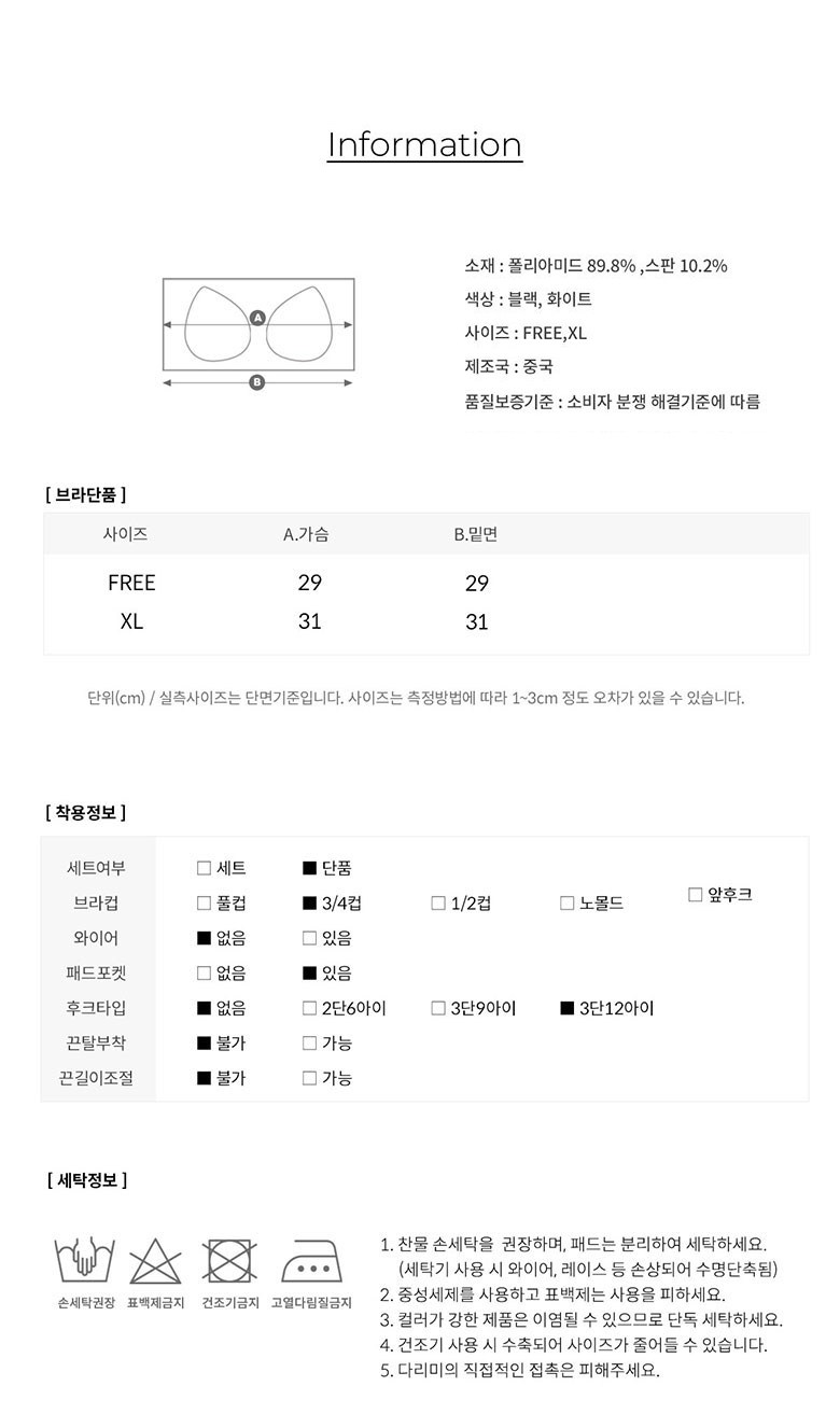 | 제조국 | 중국 | 세탁방법 및 취급시 주의사항 | 컨텐츠 참조 |