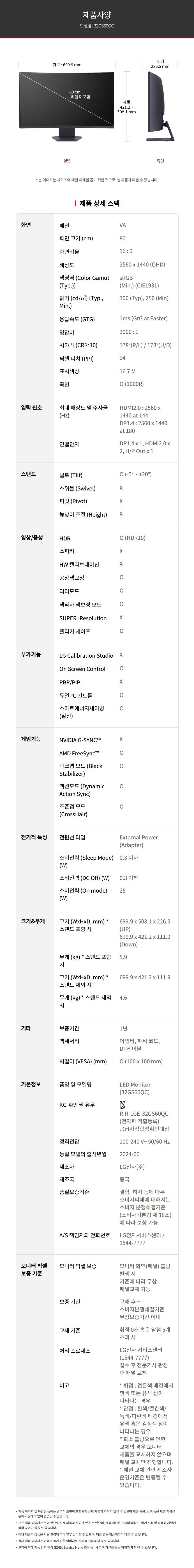 | 품명 및 모델명 | 모니터 / 32GS60QC | KC 인증정보 | 유/KC마크, R-R-LGE-32GS60QC |