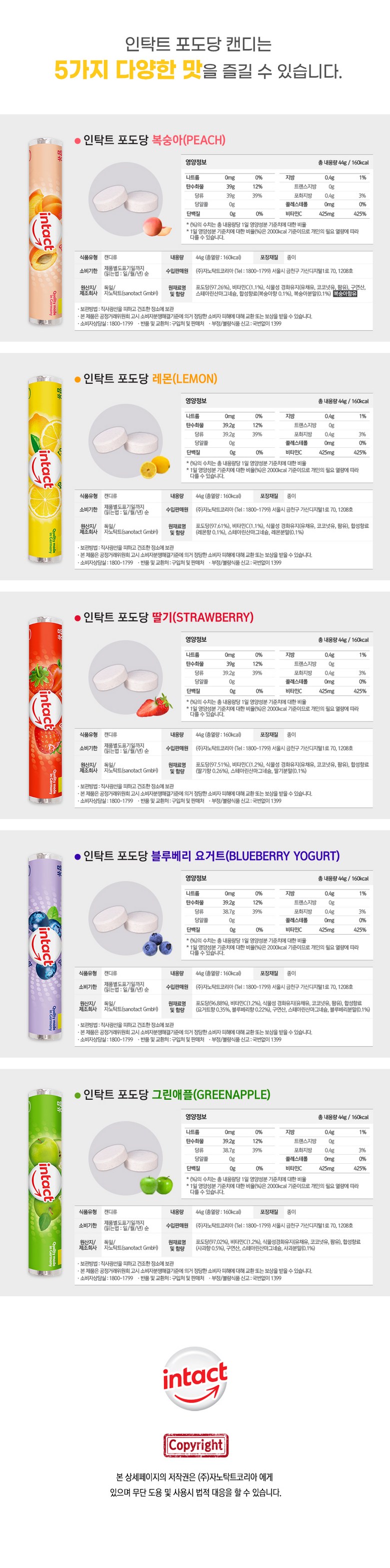 | 제품명 | 인탁트 포도당캔디 5종 1Set (5개입) 독일산 직수입 | 식품의 유형 | 캔디류 |