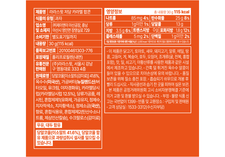| 제조연월일, 소비기한 또는 품질유지기한 | 제조일로부터 237일제조연월일: 생산일로부터 30일이내 상품으로 출고됩니다,소비기한:* 수입식품의 경우, 라벨의 소비기한(유통기한) 등 날짜 읽는 법(일/월/년, 월/일/년 등)이 제대로 기재되었는지 다시 한번 확인하신 후 입력하시기 바랍니다 | 세부 품목군별 표시사항 | 상품 상세페이지 참조 |