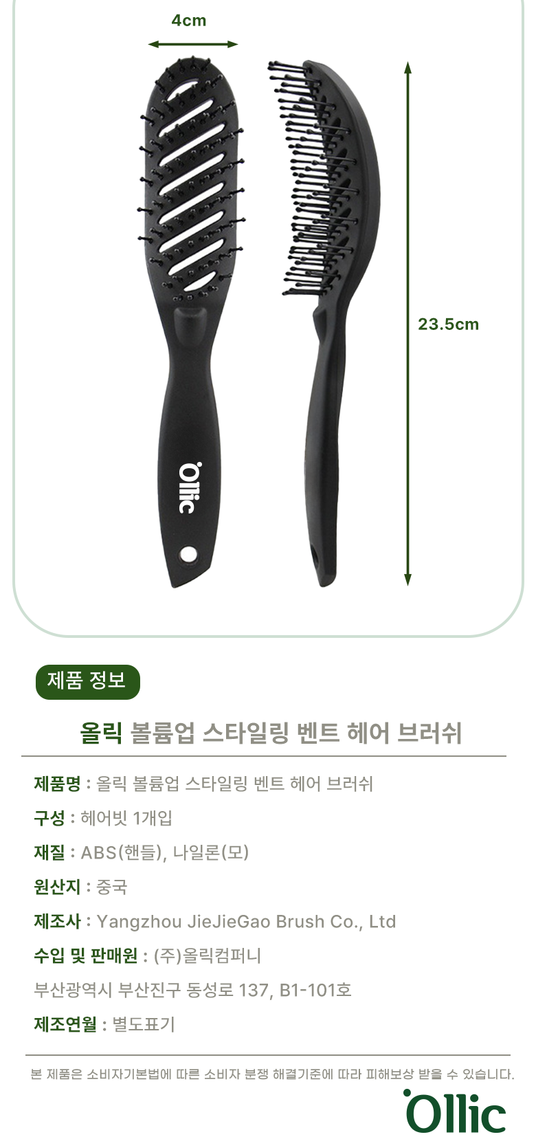 | 품명 및 모델명 | 올릭 볼륨업 스타일링 벤트 헤어 브러쉬 | 인증/허가 사항 | 해당사항없음 |