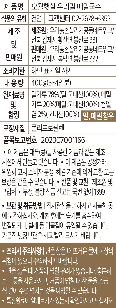 - 국수 주재료: 메밀