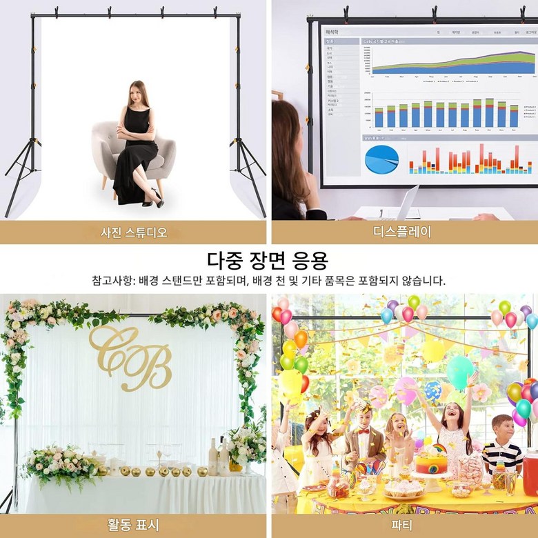 포토 스튜디오, DIY 포토 부스 외에도 파티, 웨딩, 영화 감상용 프로젝터 스크린 등 다양한 장식물을 걸 수 있습니다. -
