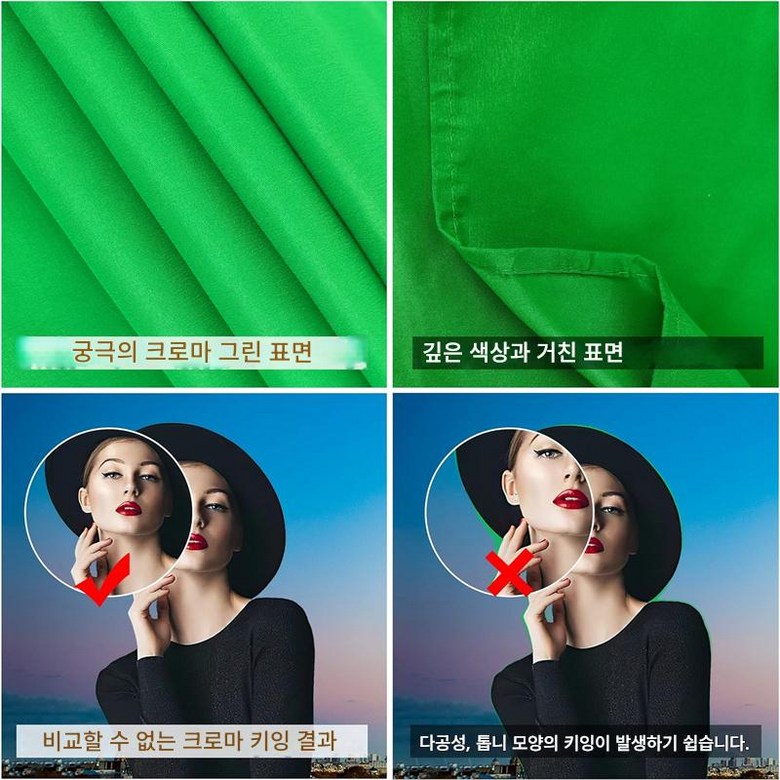 화이트/블랙/그린 배경천은 고품질 폴리에스터 원단으로 제작되었으며, 부드럽고 주름이 잘 생기지 않으며, 무봉제, 비반사 및 빛 차단 기능이 뛰어납니다. -