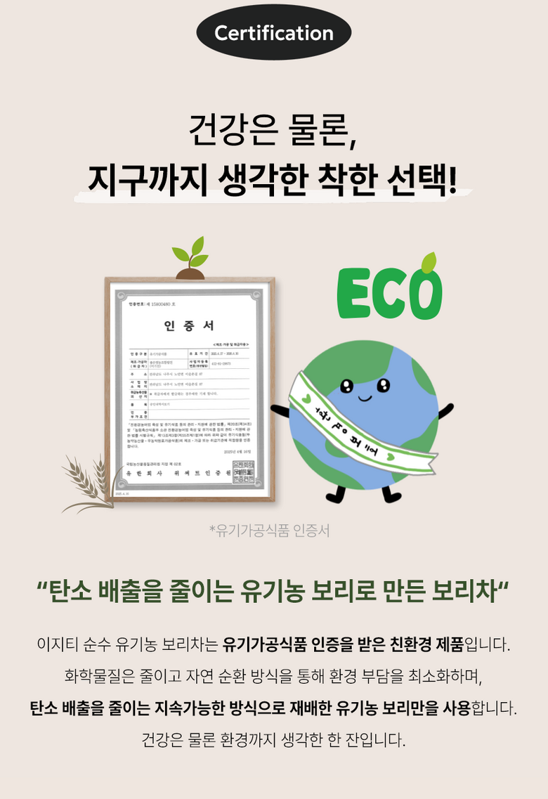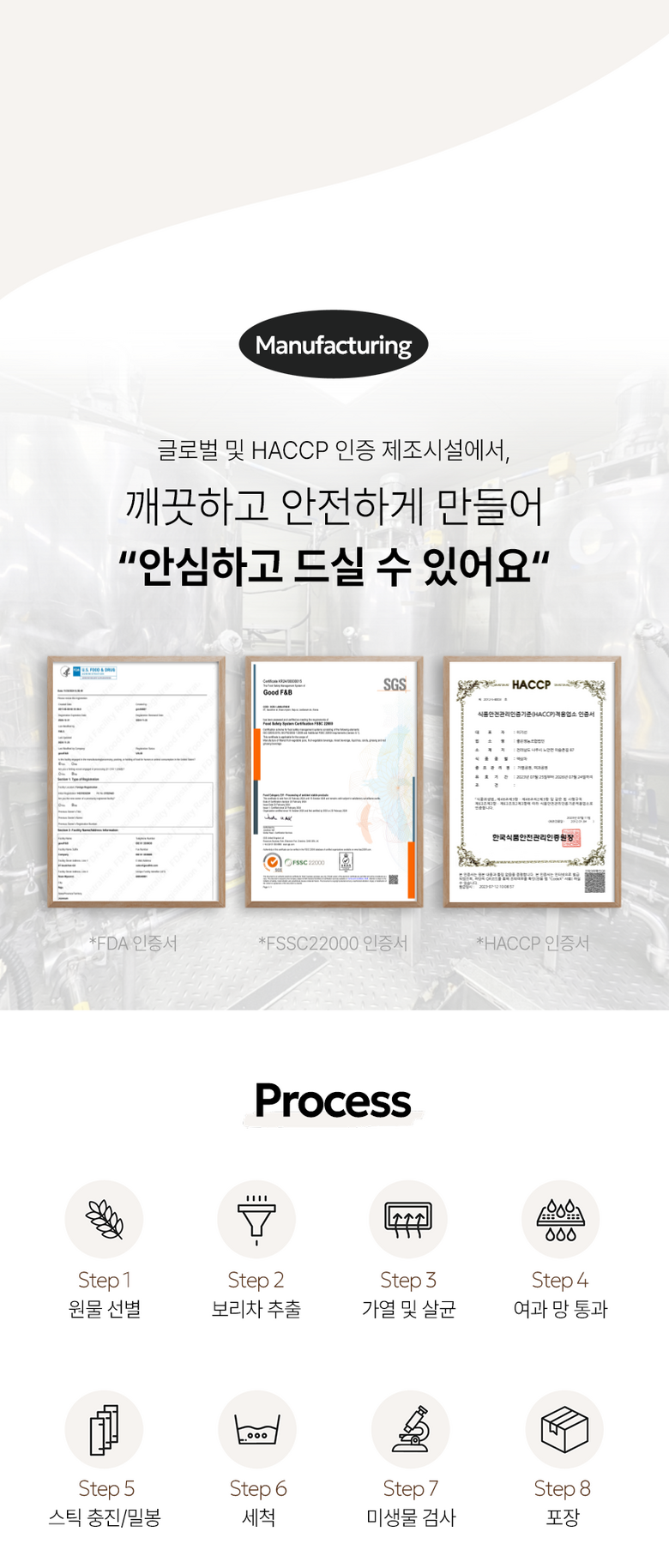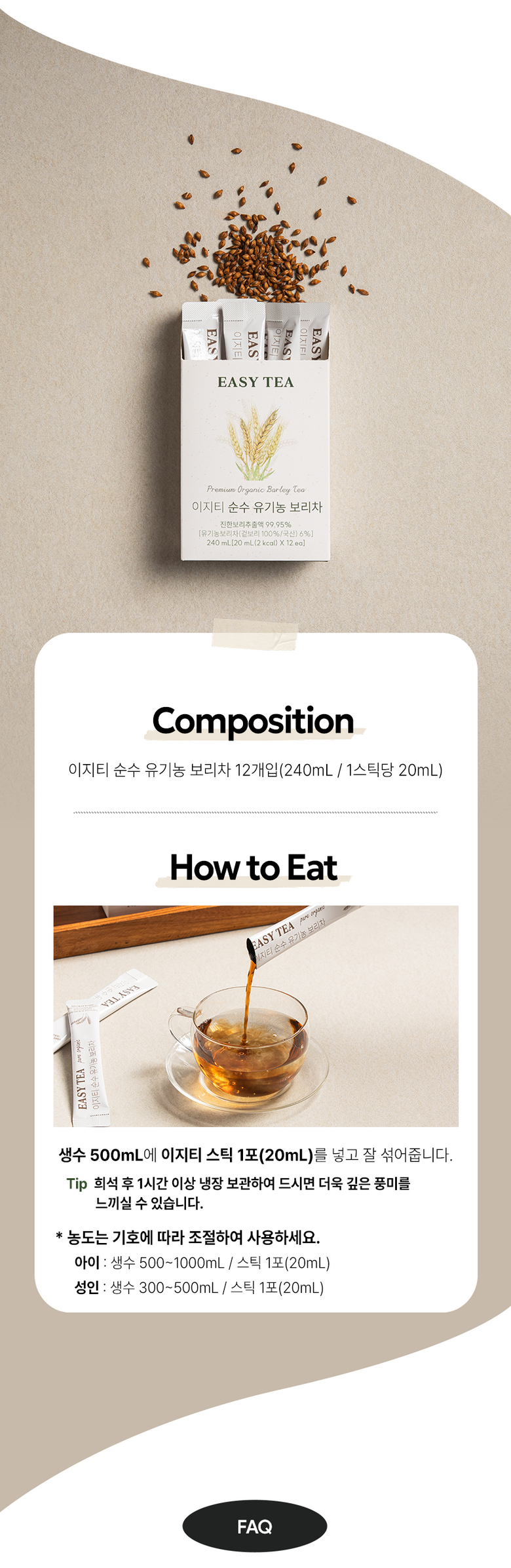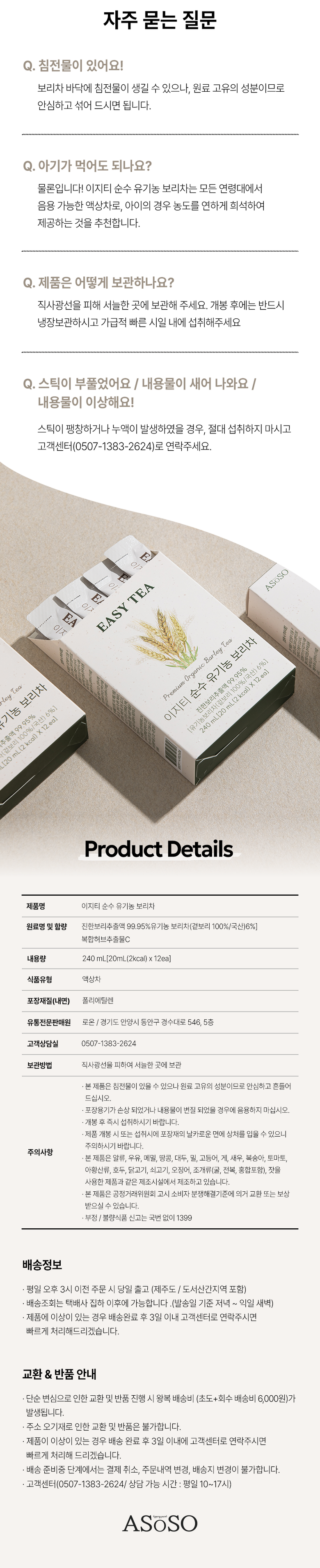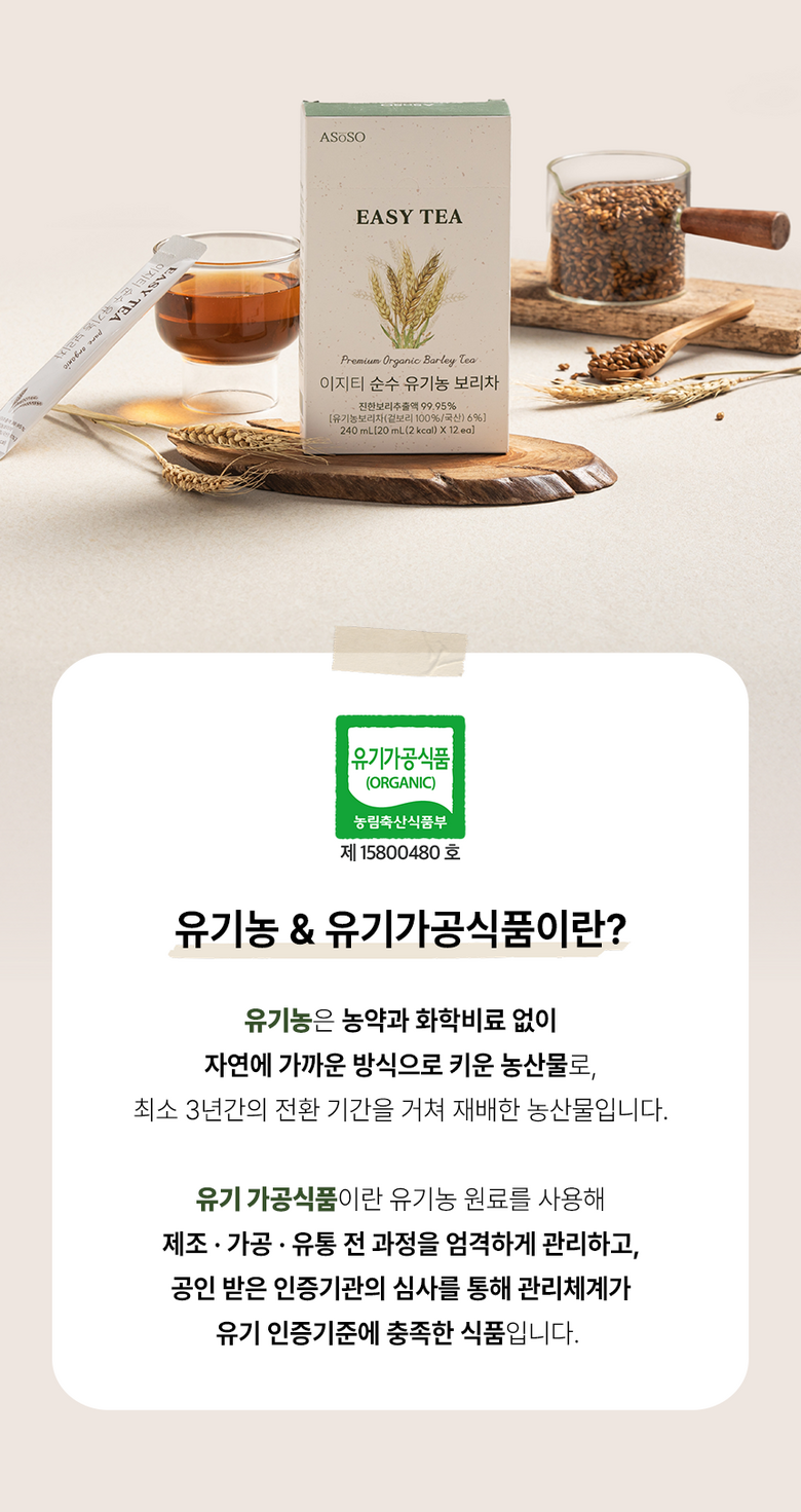 | 제품명 | 이지 순수 유기농보리차 | 식품의 유형 | 액상차 |