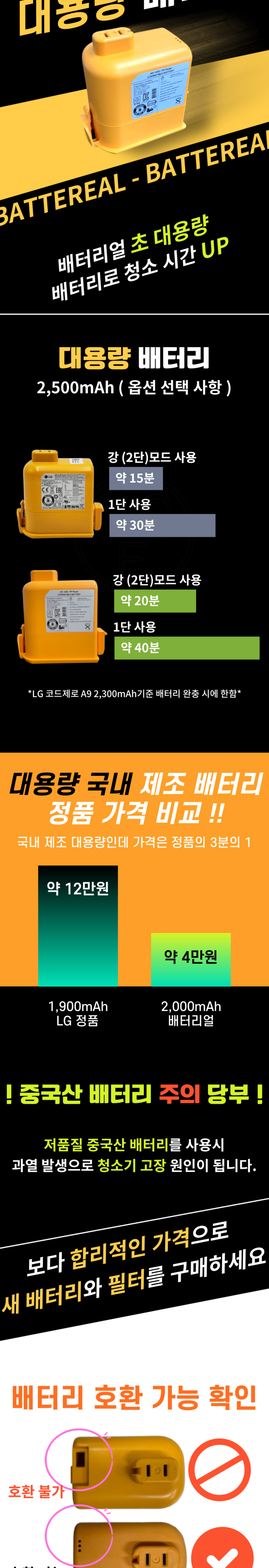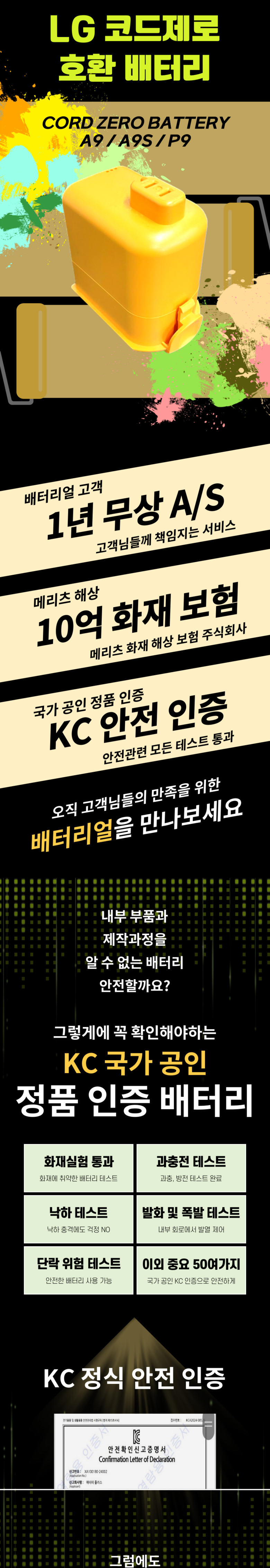 | 품명 및 모델명 | LG 코드제로 배터리 A9 A9S P9 무선 청소기 배터리 교체용 리필 정품셀 | KC 인증정보 | XA100180-24002 |