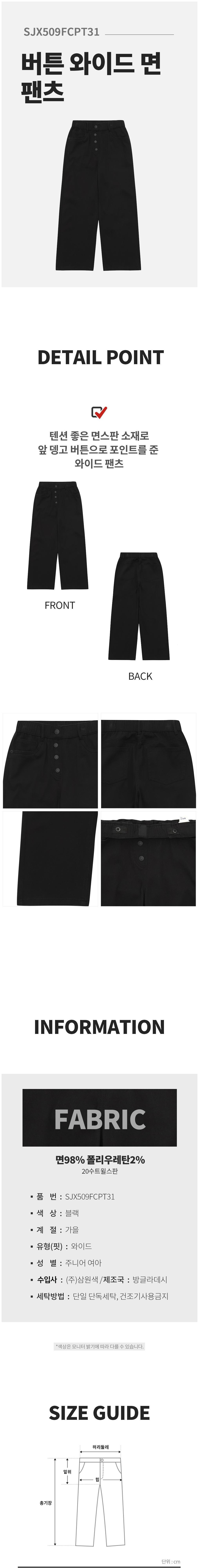 | 품명 및 모델명 | 에스핏 버튼 와이드 면 팬츠 블랙 155 | KC 인증정보 | 유/KC마크 |