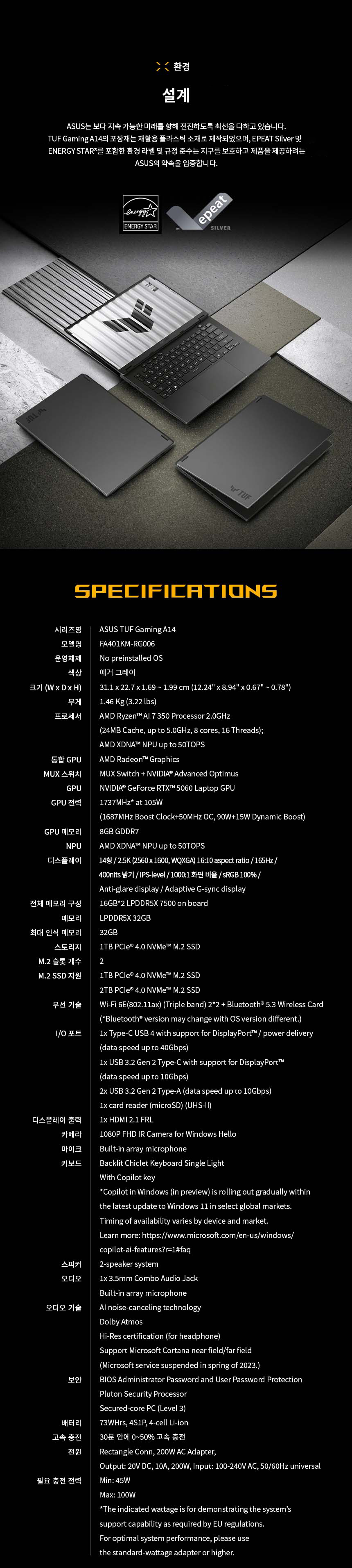 에이수스 2025 TUF 게이밍 A14 라이젠 AI 라이젠 AI 300 시리즈 지포스 RTX 5060