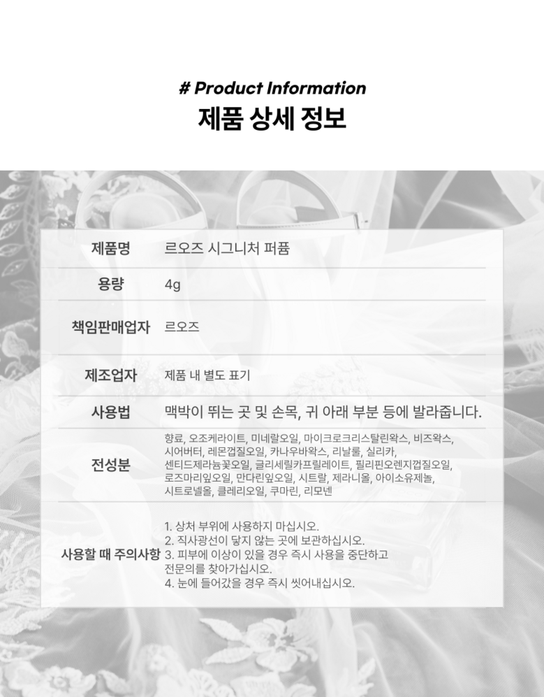 | 화장품제조업자, 화장품책임판매업자 및 맞춤형화장품판매업자 | 상품 상세페이지 참조 | 제조국 | 상품 상세페이지 참조 |