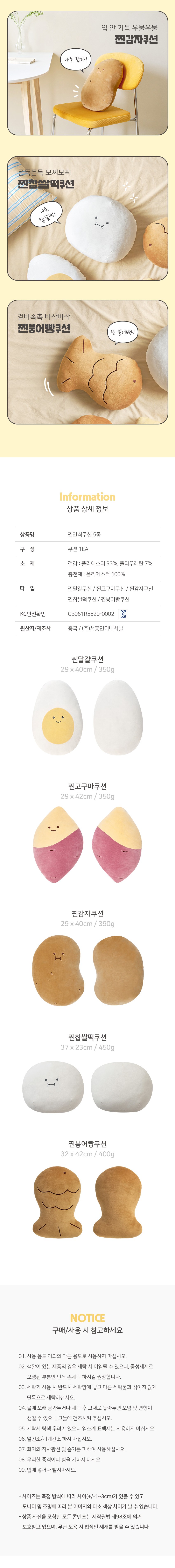 | 품명 및 모델명 | 룸앤홈 찐감자쿠션 | KC 인증정보 | CB061R5520-0002 |