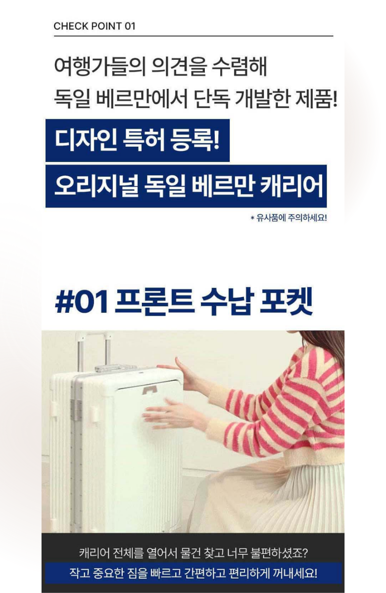 독일 베르만 투어랩 앞포켓 스마트 여행용 기내용 수하물 대형 캐리어