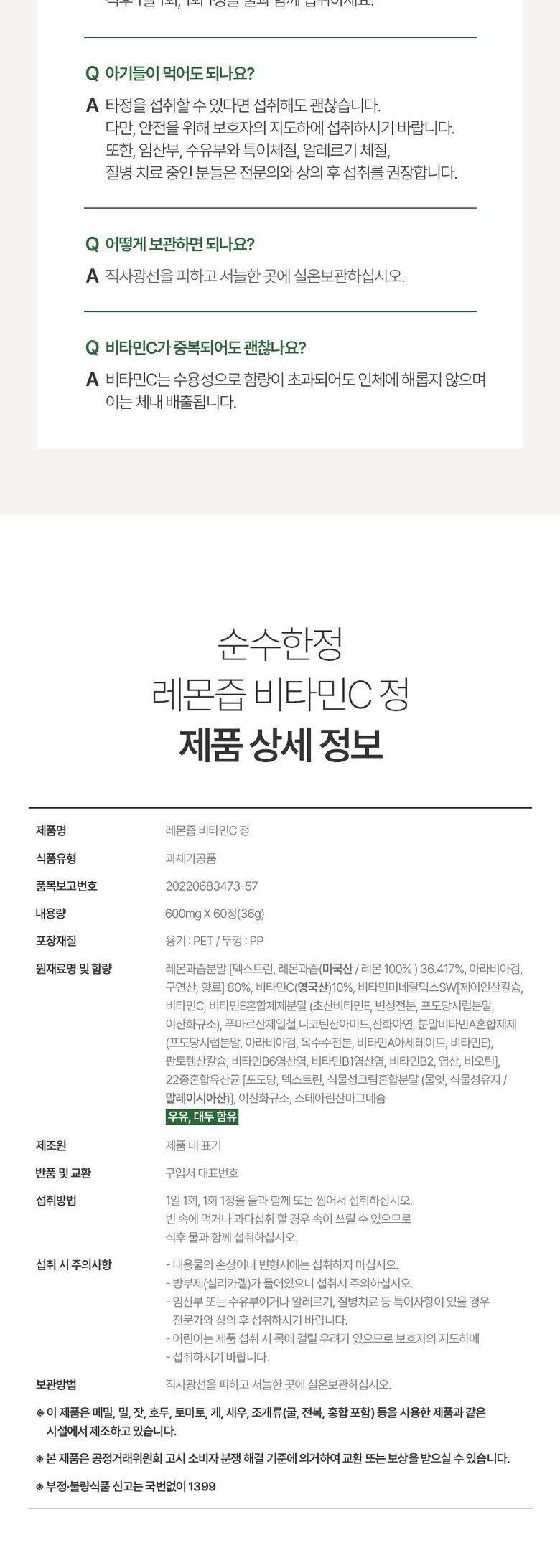 | 원재료명 및 함량 | 상품 상세페이지 참조 | 영양성분 | 상품 상세페이지 참조 |