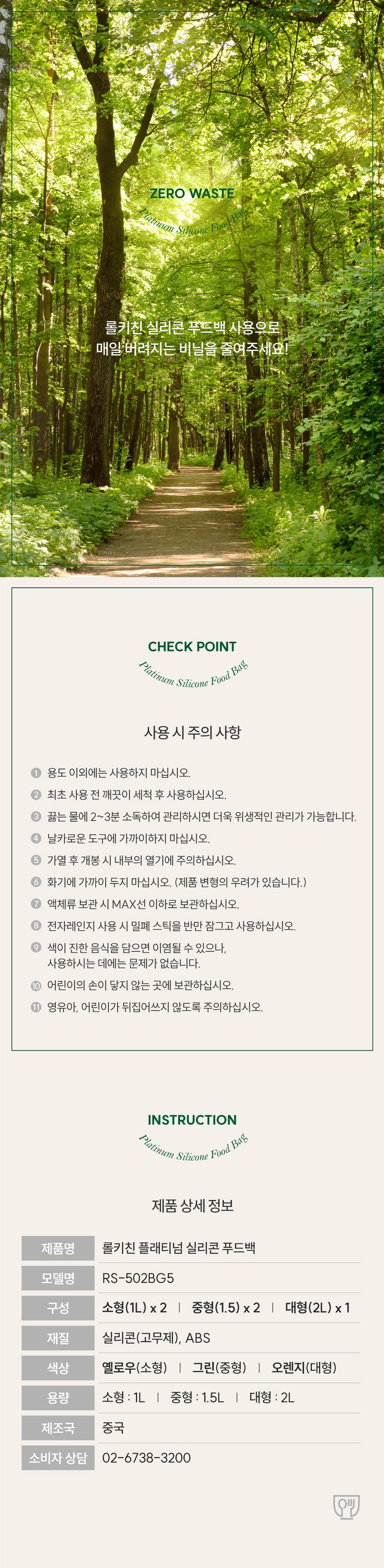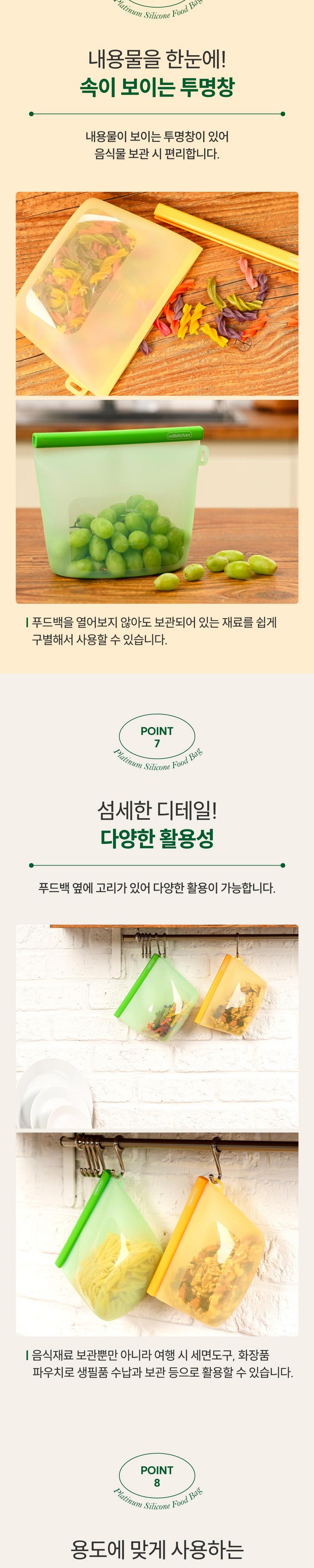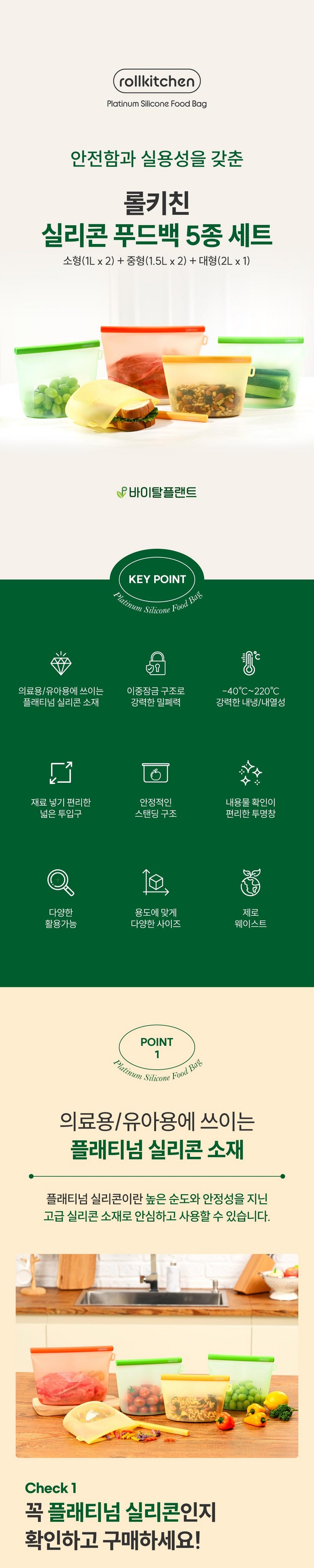 | 품명 및 모델명 | 롤키친 플래티넘 실리콘 푸드백 5종 세트 / RS-502BG5 | 재질 | 고무제(실리콘), ABS |