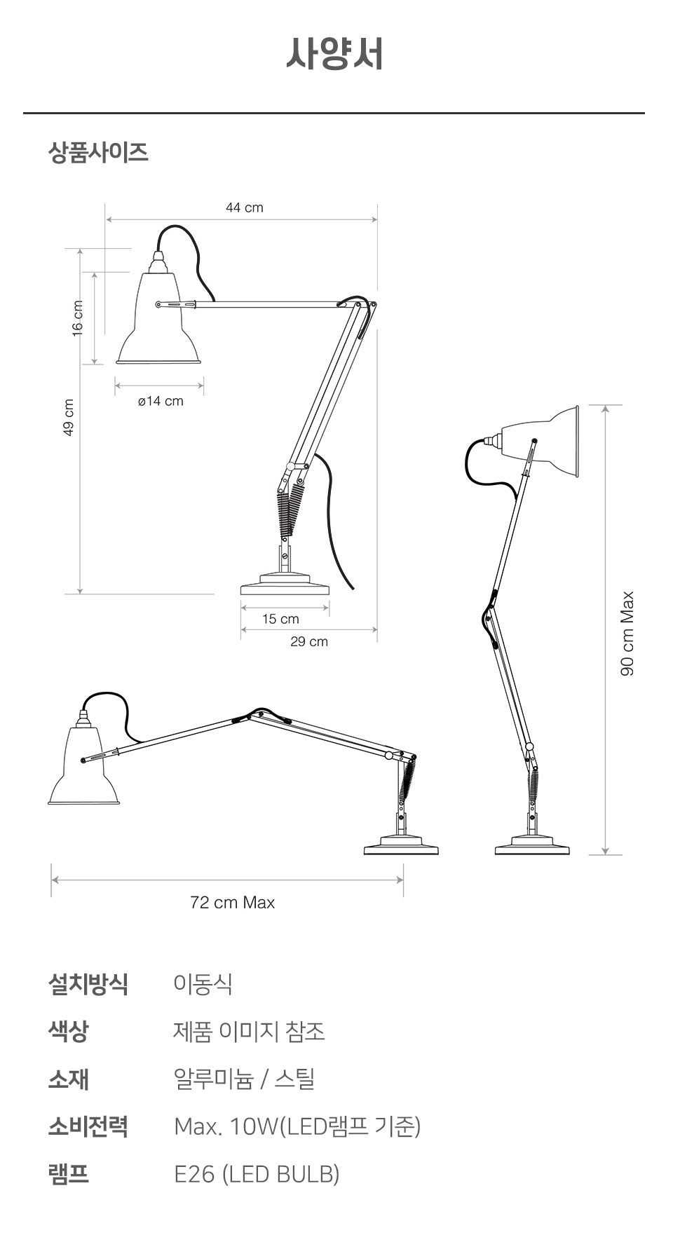 계좌이체- 사이즈: 본체 (가로44 ~ 72 x 높이49 ~ 90 cm),램프 (지름 14 x 높이 16 cm)