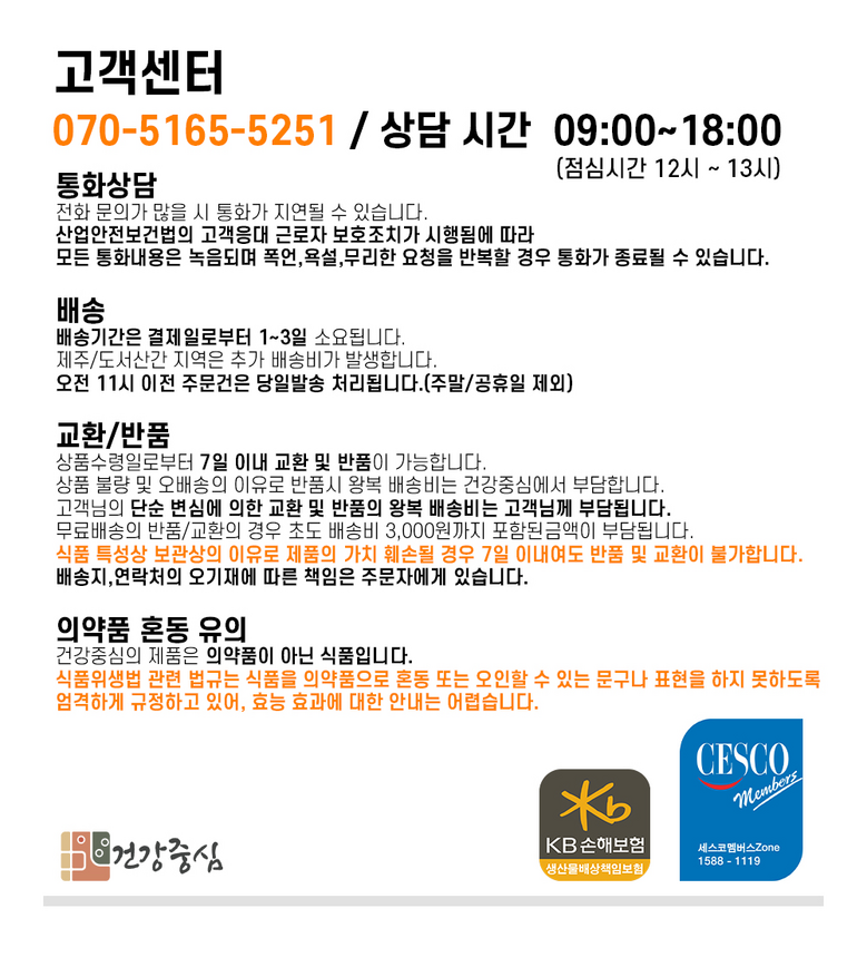 - 상품문의 및 후기게시판을 통해 취소나 환불, 반품 등은 처리되지 않습니다.