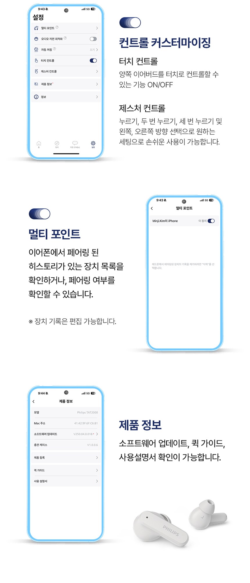 | 품명 및 모델명 | 필립스 무선 블루투스 커널형 이어폰 / TAT2000 | KC 인증정보 | 본품 : R-R-MMd-TAT2000|크레들(전지): XU101546-25072 |