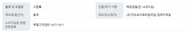 | 교환/반품 신청 기준일 | ㆍ단순변심에 의한 로켓배송 상품의 교환/반품은 제품 수령 후 30일 이내까지, 교환/반품 제한사항에 해당하지 않는 경우에만 가능 (교환/반품 비용 고객부담) ㆍ상품의 내용이 표시·광고의 내용과 다른 경우에는 상품을 수령한 날부터 3개월 이내, 그 사실을 안 날 또는 알 수 있었던 날부터 |