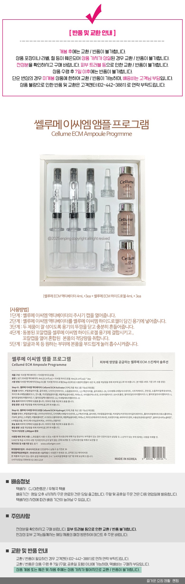 - ㆍ교환/반품에 관한 일반적인 사항은 판매자가 제시사항보다 관계법령이 우선합니다.