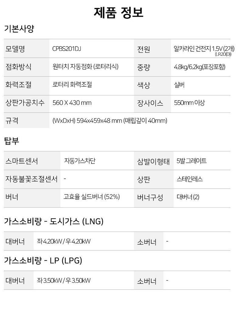| 품명 및 모델명 | CPBS201DJ | 인증/허가 사항 | 상품 상세페이지 참조 |