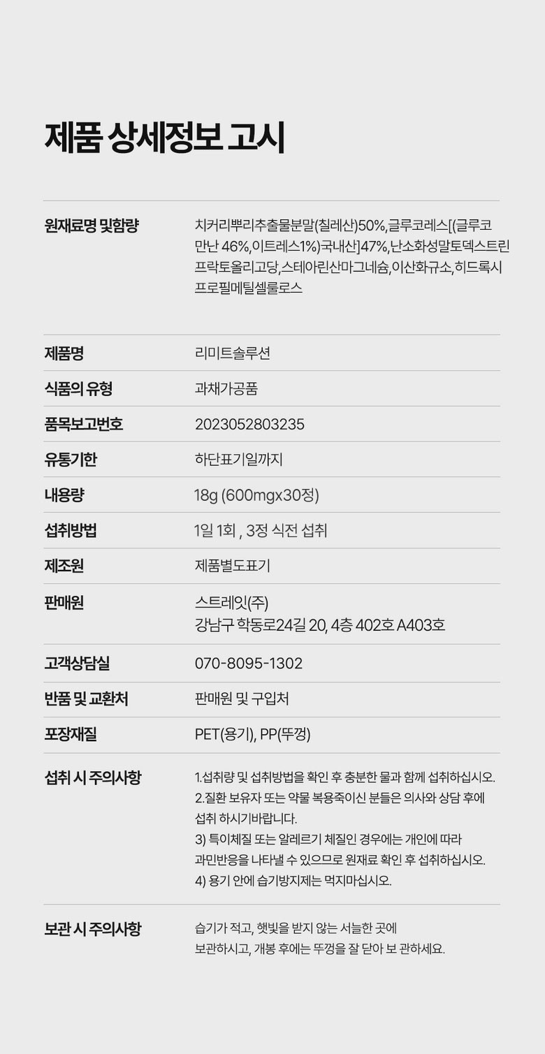 | 원재료명 및 함량 | 상품 상세페이지 참조 | 영양성분 | 상품 상세페이지 참조 |