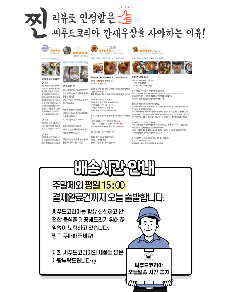 | 배송방법 | 신선/냉장/냉동 | 배송비 | 무료배송 - 도서산간 지역 배송불가 |