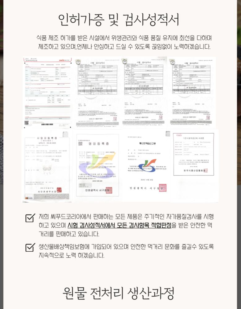상호/대표자 | 주식회사 씨푸드코리아 / 문용식 | 사업장 소재지 | 인천광역시 서구 검단로326번길 43 3동 (왕길동) |