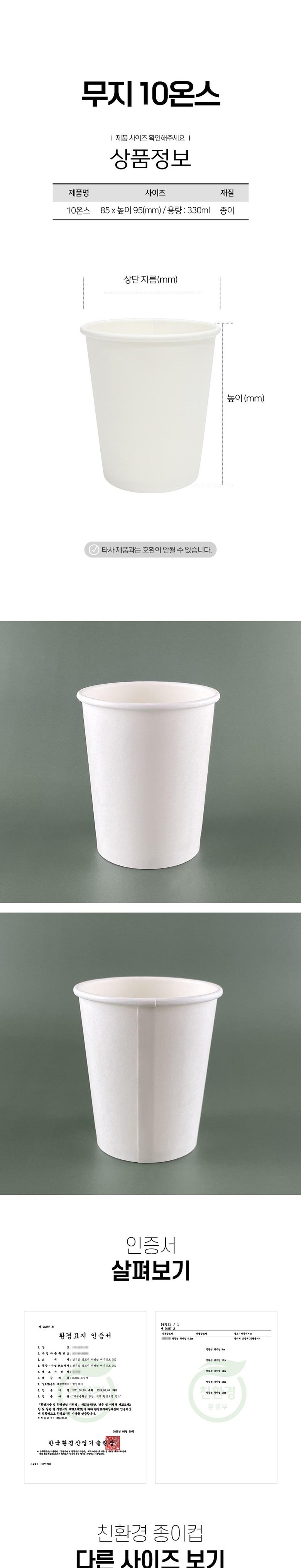 | 품명 및 모델명 | 커피데이 테이크아웃컵 10온스 무지종이컵 1000개 300ml 1000개, 1박스 | 인증/허가 사항 | 상품 상세페이지 참조 |