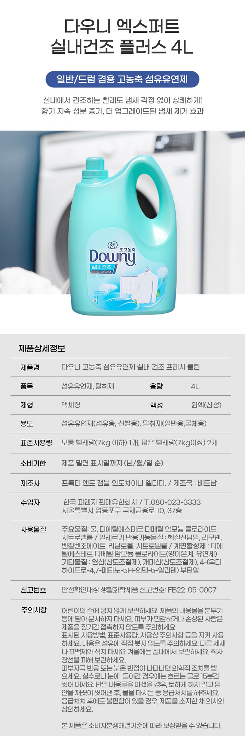 | 품목 및 제품명 | 상품 상세페이지 참조 | 용도(표백제의 경우 계열을 함께표시) 및 제형 | 상품 상세페이지 참조 |