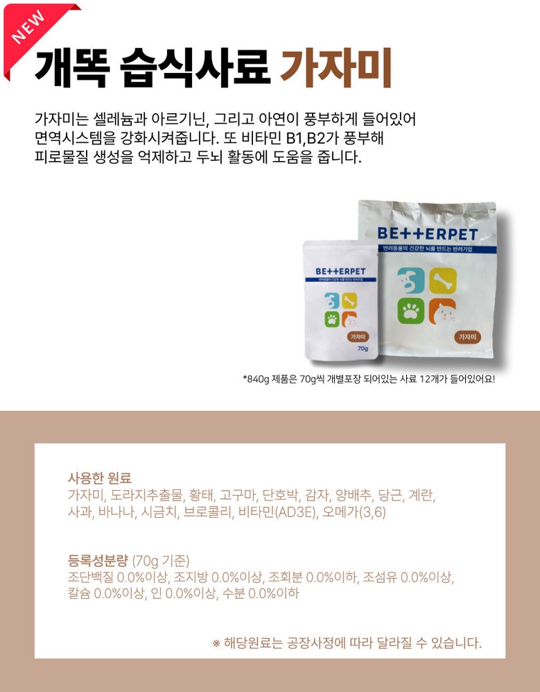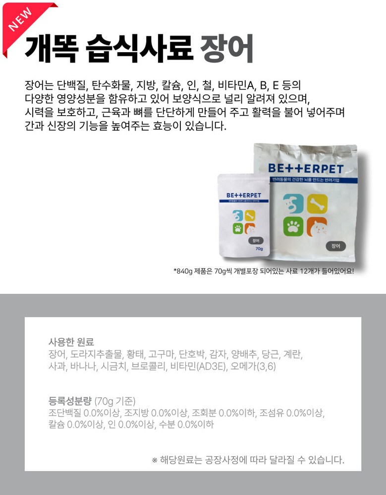 | 제조국(원산지) | 국내산 | 제조자(수입자) | 베러펫 |