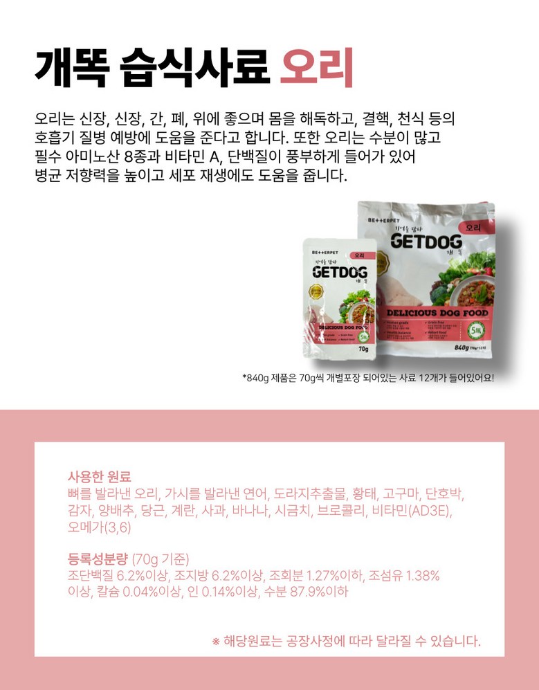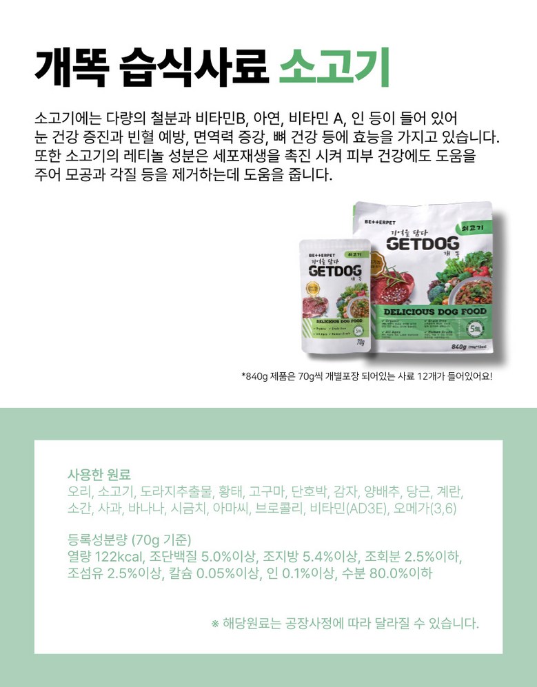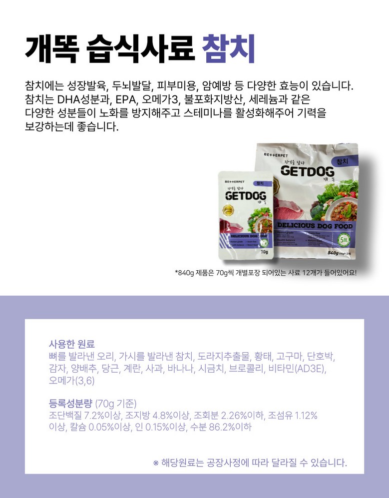 | 품명 및 모델명 | 베러펫 개똑 강아지습식사료 강아지사료 주식 보양식 소고기+오리+참치 70g, 24개 | 인증/허가 사항 | 해당사항 없음 |