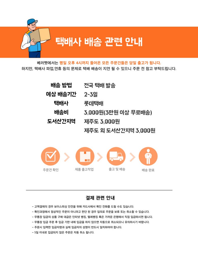 | 배송기간 | ㆍ도서산간 지역 등은 배송에 3-5일이 더 소요될 수 있습니다. - 천재지변, 물량 수급 변동 등 예외적인 사유 발생 시, 다소 지연될 수 있는 점 양해 부탁드립니다. | ||
