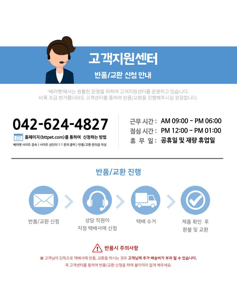 - ㆍ모니터 해상도의 차이로 인해 색상이나 이미지가 실제와 달라, 고객이 단순 변심으로 교환/반품을 무료로 요청하는 경우