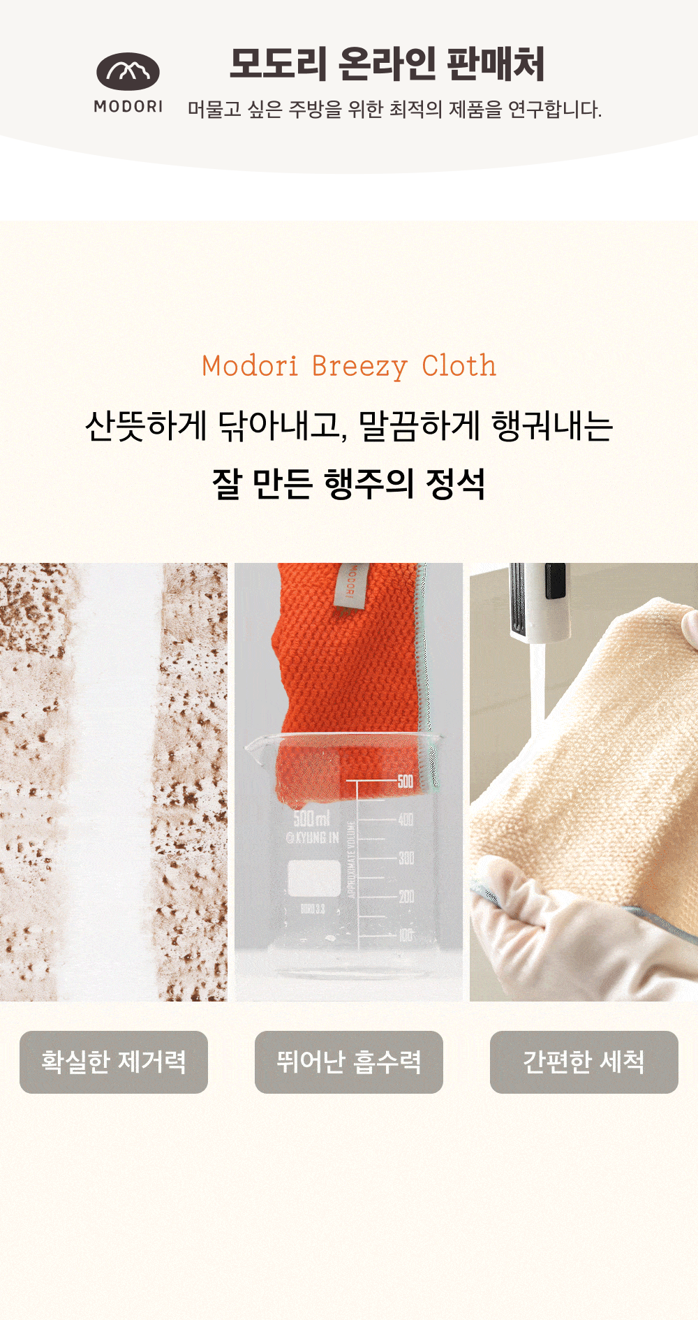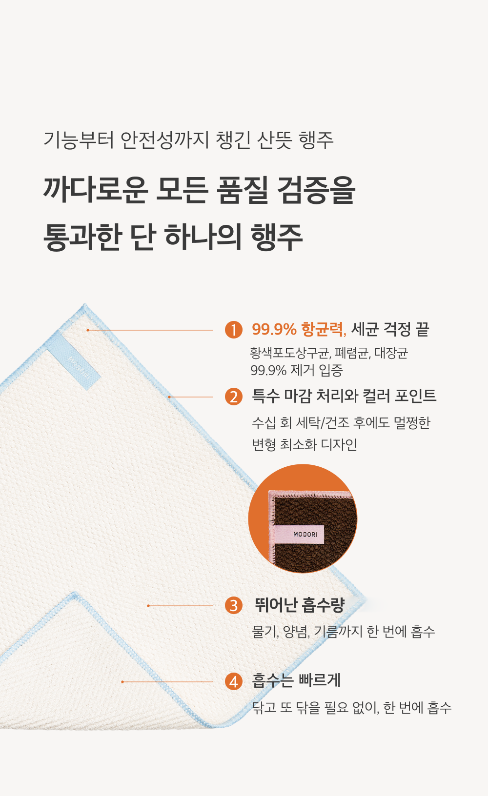 | 품명 및 모델명 | 모도리 산뜻 행주 2개 세트 | 재질 | 극세사 (폴리에스터 80%, 폴리아미드 20%) |