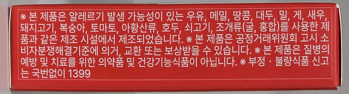 | 생산자 및 소재지 | 컨텐츠 참조 | 제조연월일, 소비기한 또는 품질유지기한 | 소비기한(또는 유통기한) : 2027년 11월 06일 이거나 그 이후인 상품 제조년월일 : 2025년 11월 07일 이후인 제조상품 |