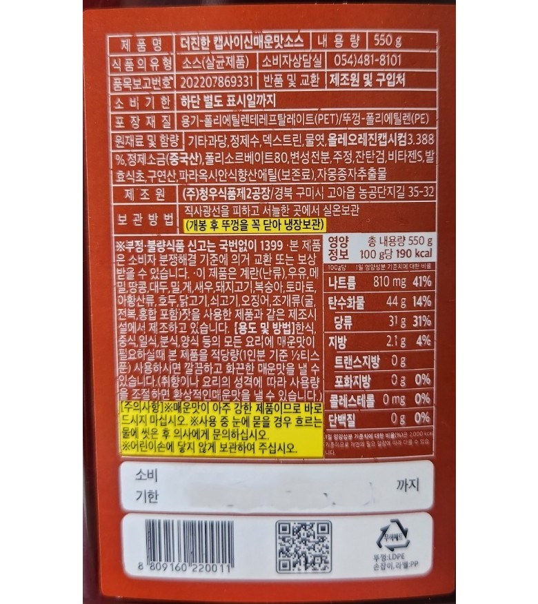 - 소스 종류: 캡사이신