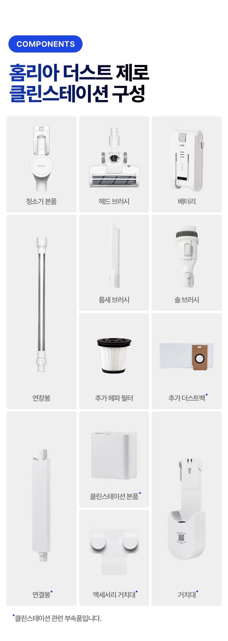 | 품명 및 모델명 | 홈리아 무선청소기 클린스테이션 | KC 인증정보 | 본품:R-R-DOr-Homelia-220BL / 클린스테이션:R-R-DOr-Homelia220CST,HU073698-25001 / 전지:XU102060-23008A |