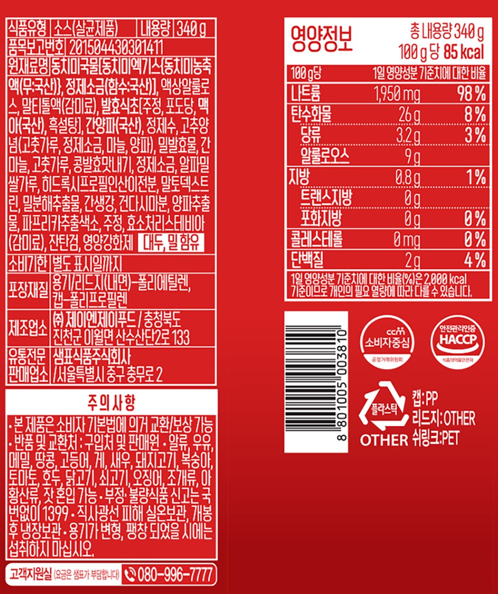 | 제품명 | 저당 비빔장 | 식품의 유형 | 컨텐츠 참조 |