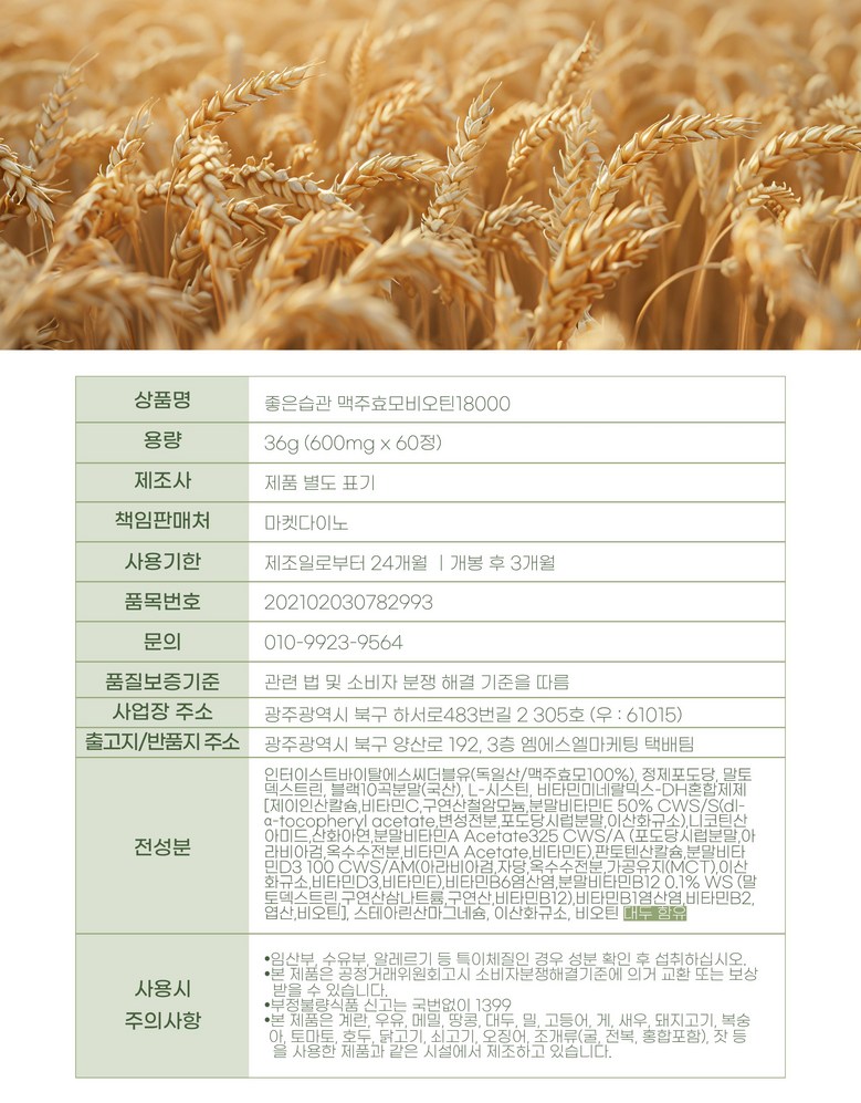 | 제품명 | 상품 상세페이지 참조 | 식품의 유형 | 상품 상세페이지 참조 |