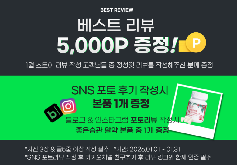 SNS 포토리뷰 작성 후 카카오 채널로 인증해주시면