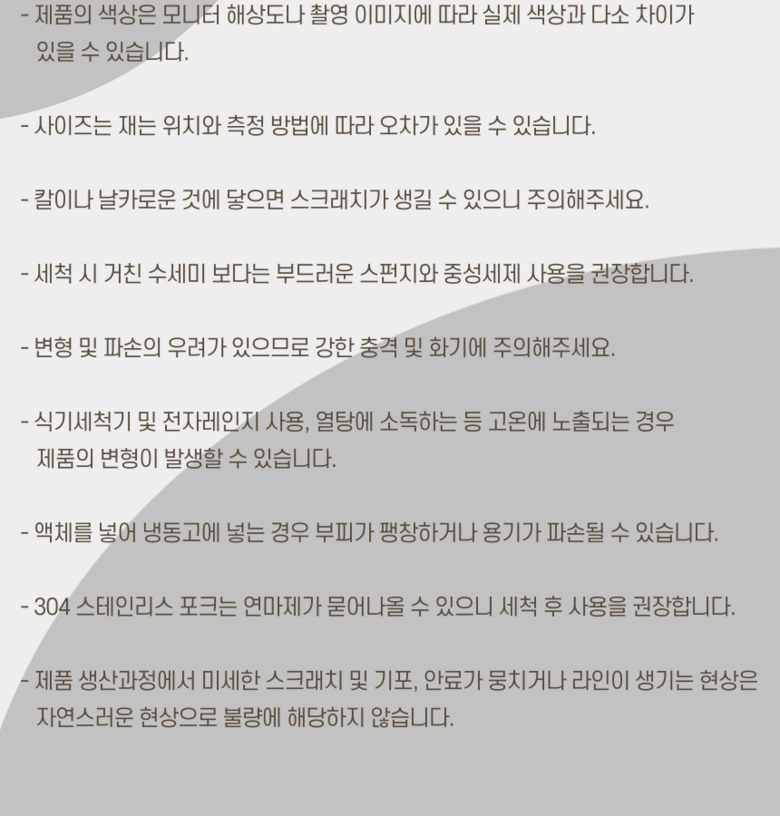 - ㆍ모니터 해상도의 차이로 인해 색상이나 이미지가 실제와 달라, 고객이 단순 변심으로 교환/반품을 무료로 요청하는 경우