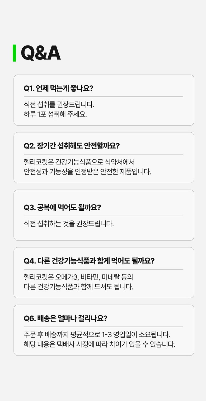 - 가격, 판매자, 교환/환불 및 배송 등 해당 상품 자체와 관련 없는 문의는 고객센터 내 1:1 문의하기를 이용해주세요.