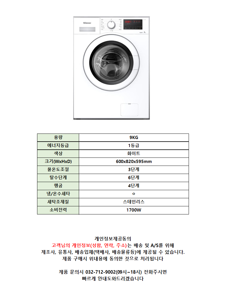 대우 위니아 클라쎄 9kg 빌트인 세탁기 단종되어,